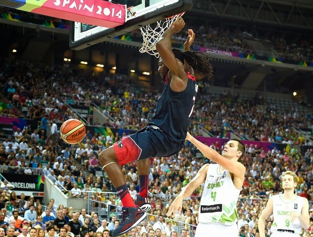 Os EUA confirmaram o favoritismo e bateram a Eslovênia dos irmãos Dragic. Mas apesar do placar dilatado, a partida se desenhou mais complicada no princípio. No intervalo, a vantagem era de apenas sete pontos pró-americanos, muito graças ao aproveitamento ruim da equipe. James Harden passou dois quartos zerado após oito erros em 16 minutos de quadra.